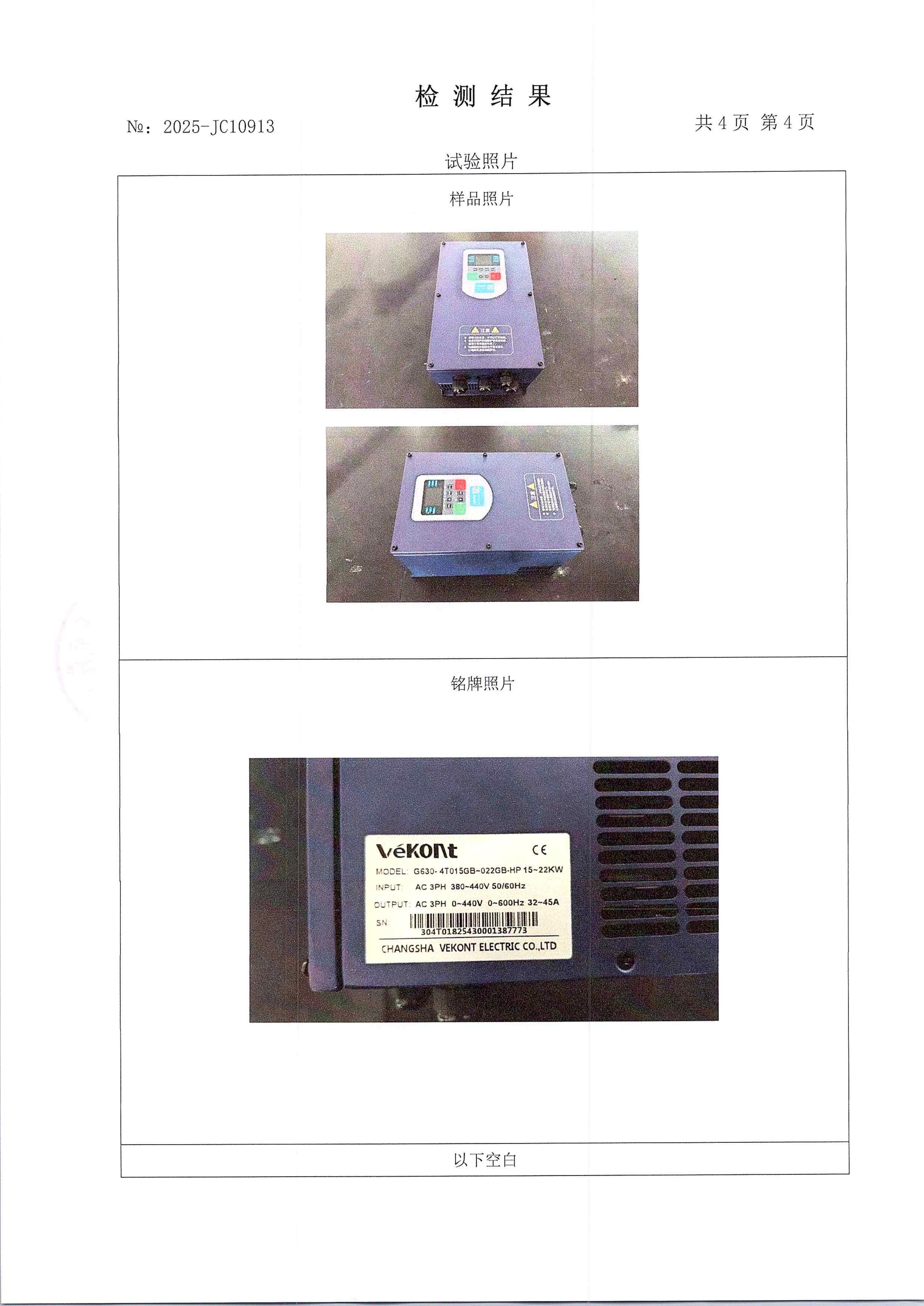 G630-HP高防护变频器检测报告